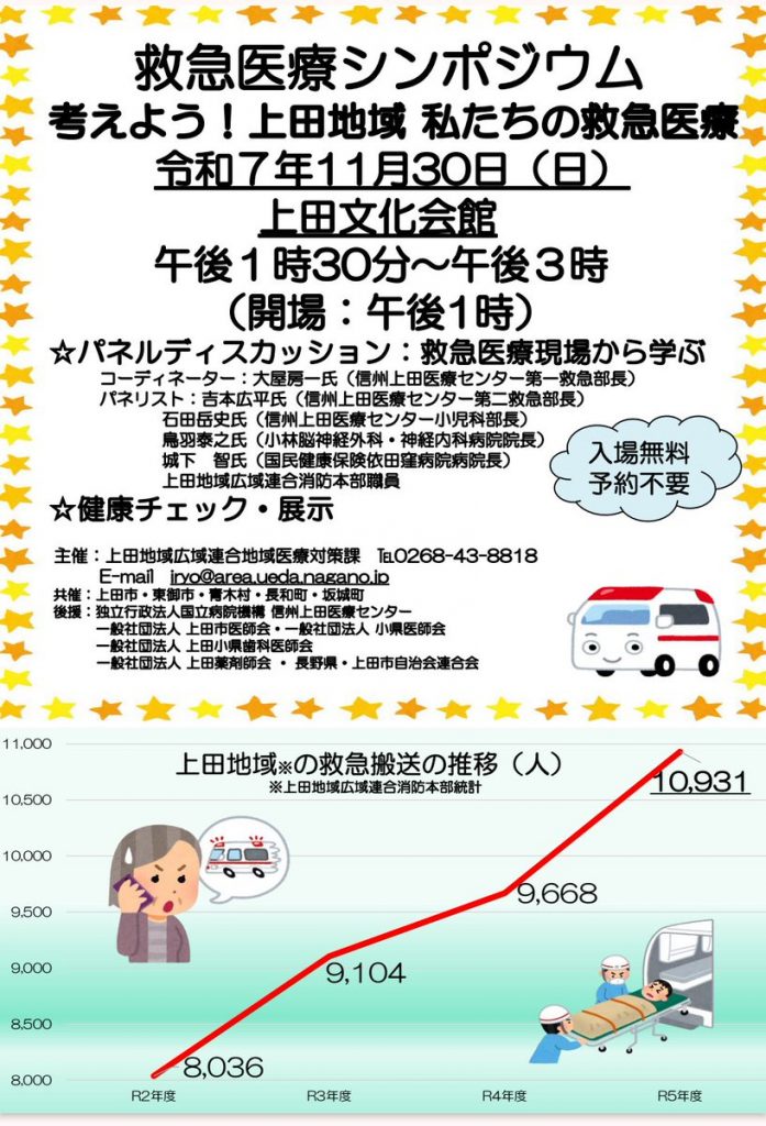 2025年11月30日(日)上田文化会館にて”考えよう!上田地域 私たちの救急医療”と題して「救急医療シンポジウム」が行われ、当院の城下病院長がパネリストとして参加し「上田地域の救急医療の新たな取り組み」について講演しました。